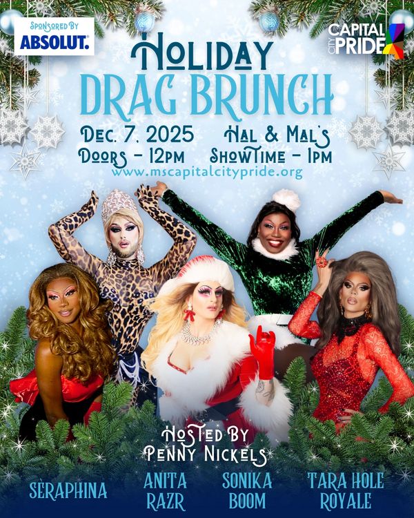 Celebrate the winter holidays with Capital City Pride! Join us for delicious food, a fabulous show and a Safe Space for ALL at the Holiday Drag Brunch sponsored by Absolut. Join us on Sunday, December 7, 2025, at Hal & Mal’s for an unforgettable show filled with sparkle, entertainment, and plenty of holiday cheer.