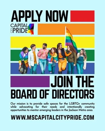 We're excited to announce that MS Capital City Pride is actively seeking passionate individuals to join our Board of Directors! If you're dedicated to supporting and uplifting the LGBTQIA+ community, we want to hear from you.